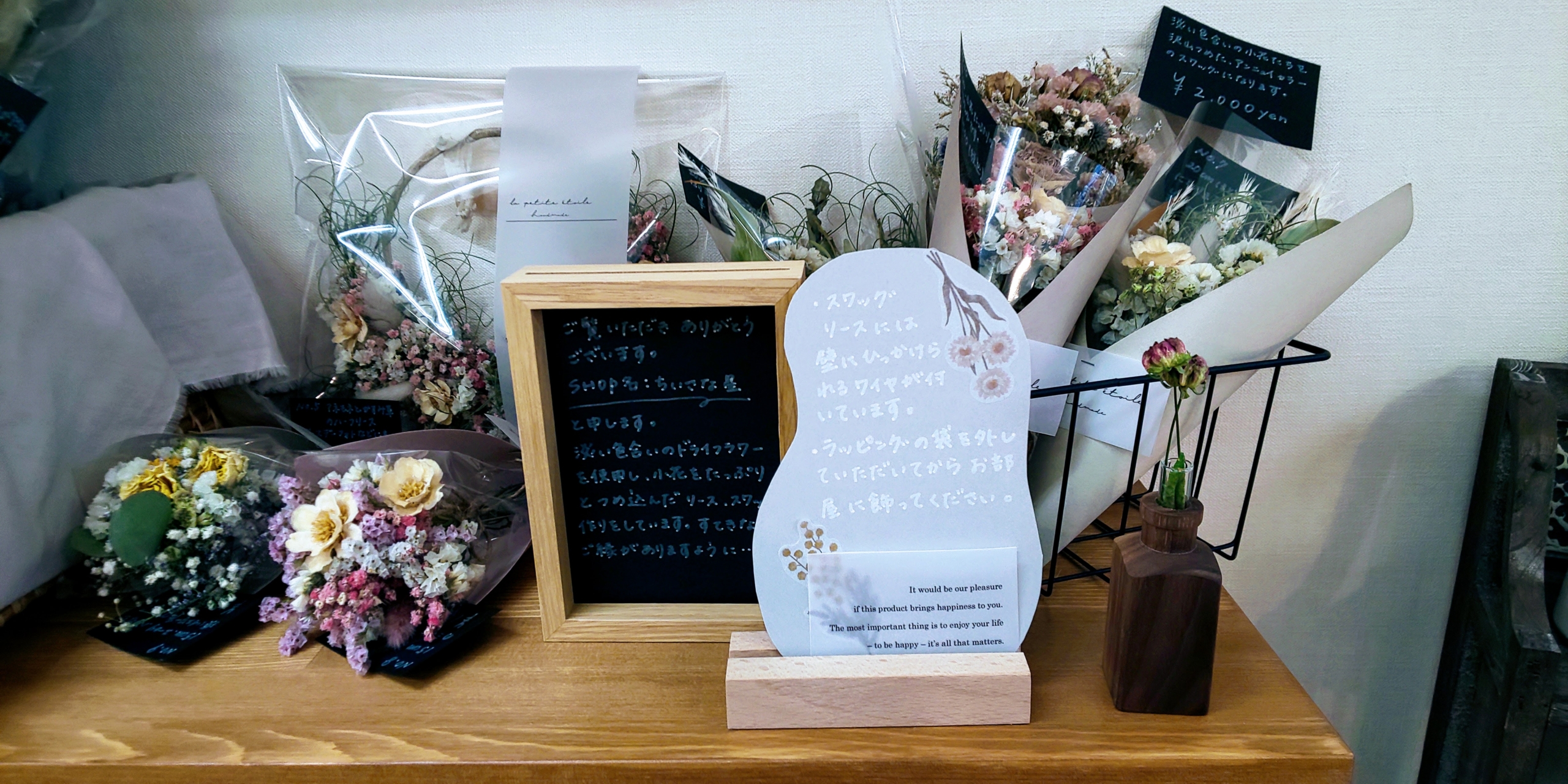 ◆淡い色合いのドライフラワーを使用してリースやスワッグを製作しています。