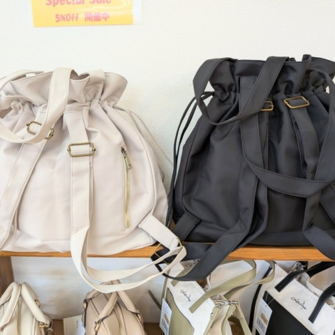次にくしゅくしゅしたフォルムがかわいいドロストバックに新しく色が加わりました!