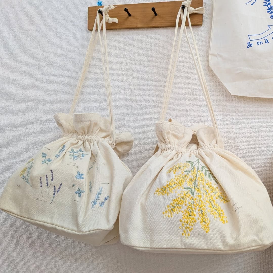 巾着トートバックバックミモザとハーブの2種類