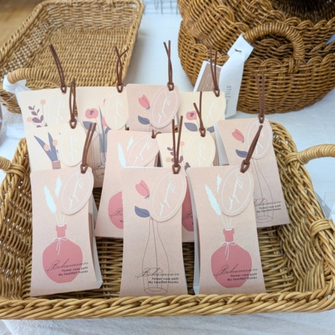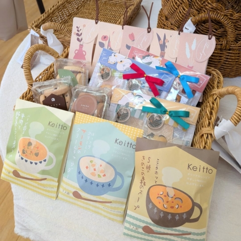 今、雑貨屋Kochiで人気の組み合わせはハンカチやクッキー、ドリップコーヒー、スープなどのいずれかを組み合わせるプチギフトが人気になっています