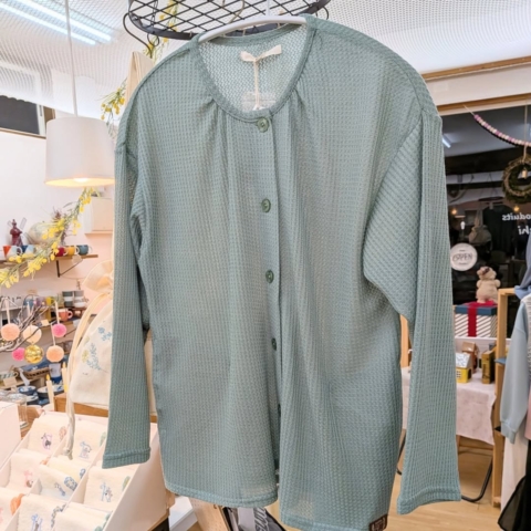 また、ワッフル素材のカーディガン、7分袖のアップリケプルオーバーなどが揃いました