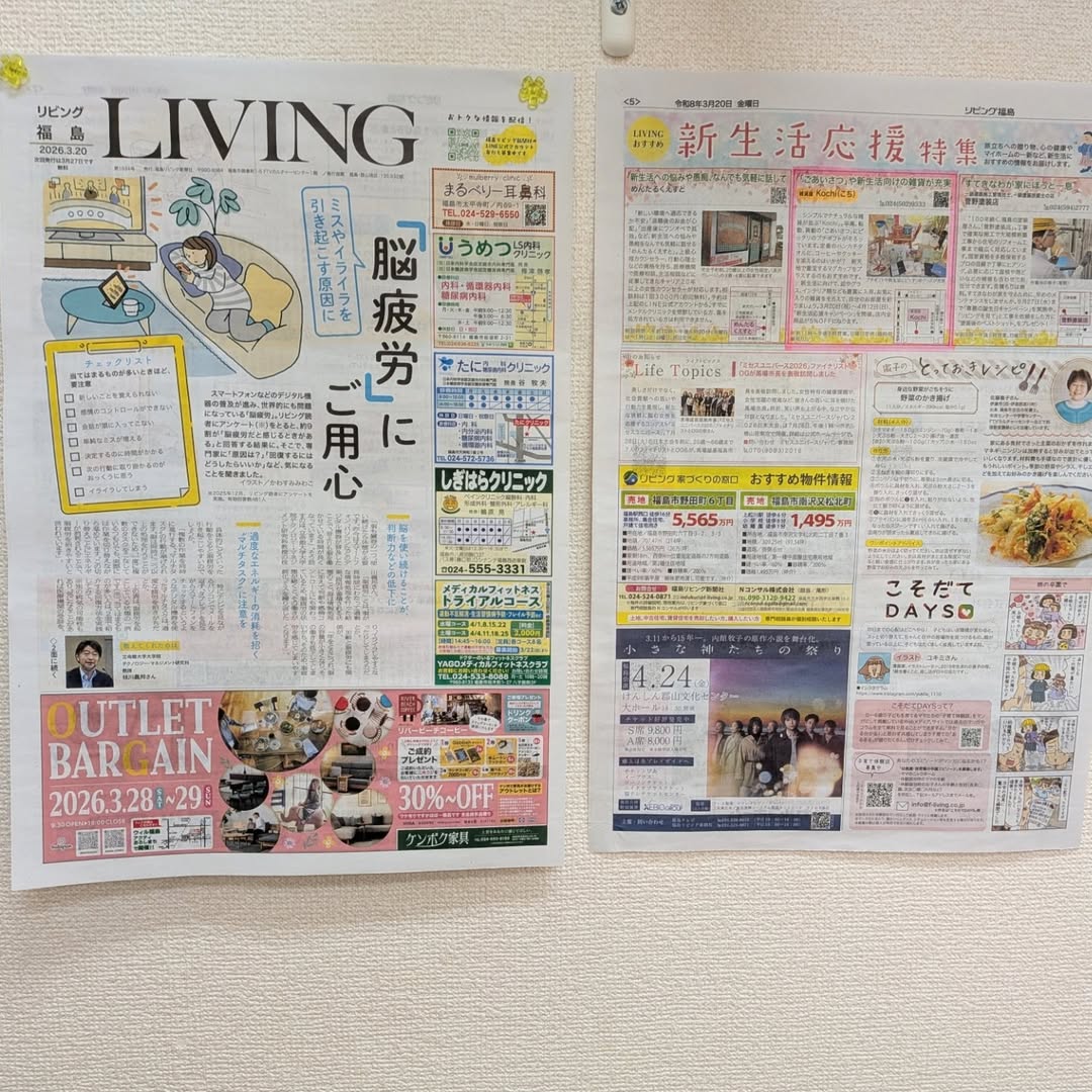 なお、先週、配布されましたリビング福島の新生活応援特集に当店が掲載されていますのでこちらもチェックしてみて下さいね^_^