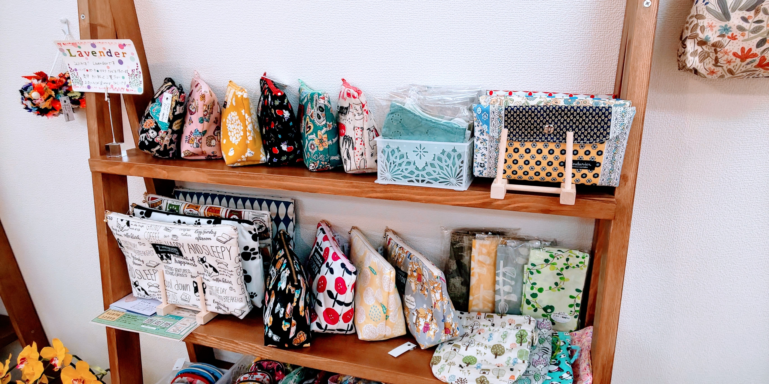 「Lavender」さんは布で大小様々なポーチやバックを製作しています。