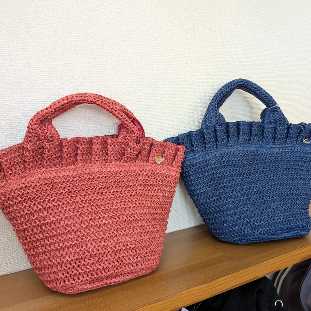 またもう1種類も同じく、ペーパーの編み地が軽やかな印象のミニトートです。さりげないフリルがデザインのポイントです