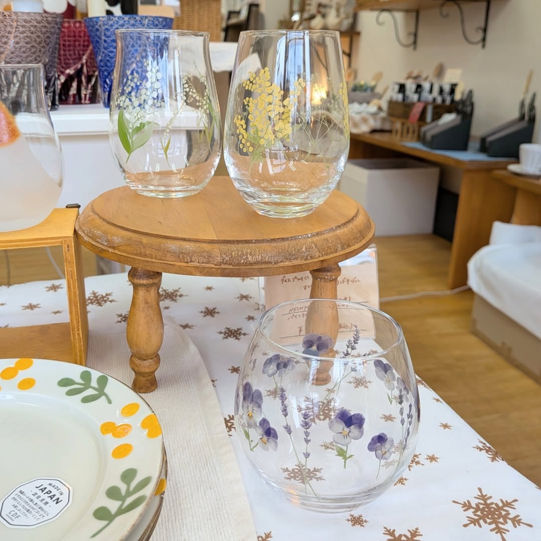 まず1つ目はミモザやスズランなどこのシーズンにぴったりのグラスになります