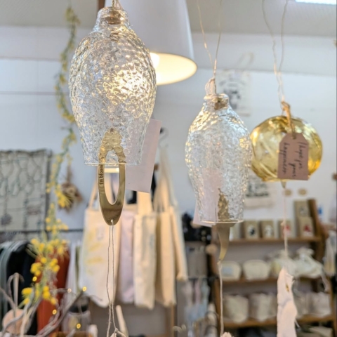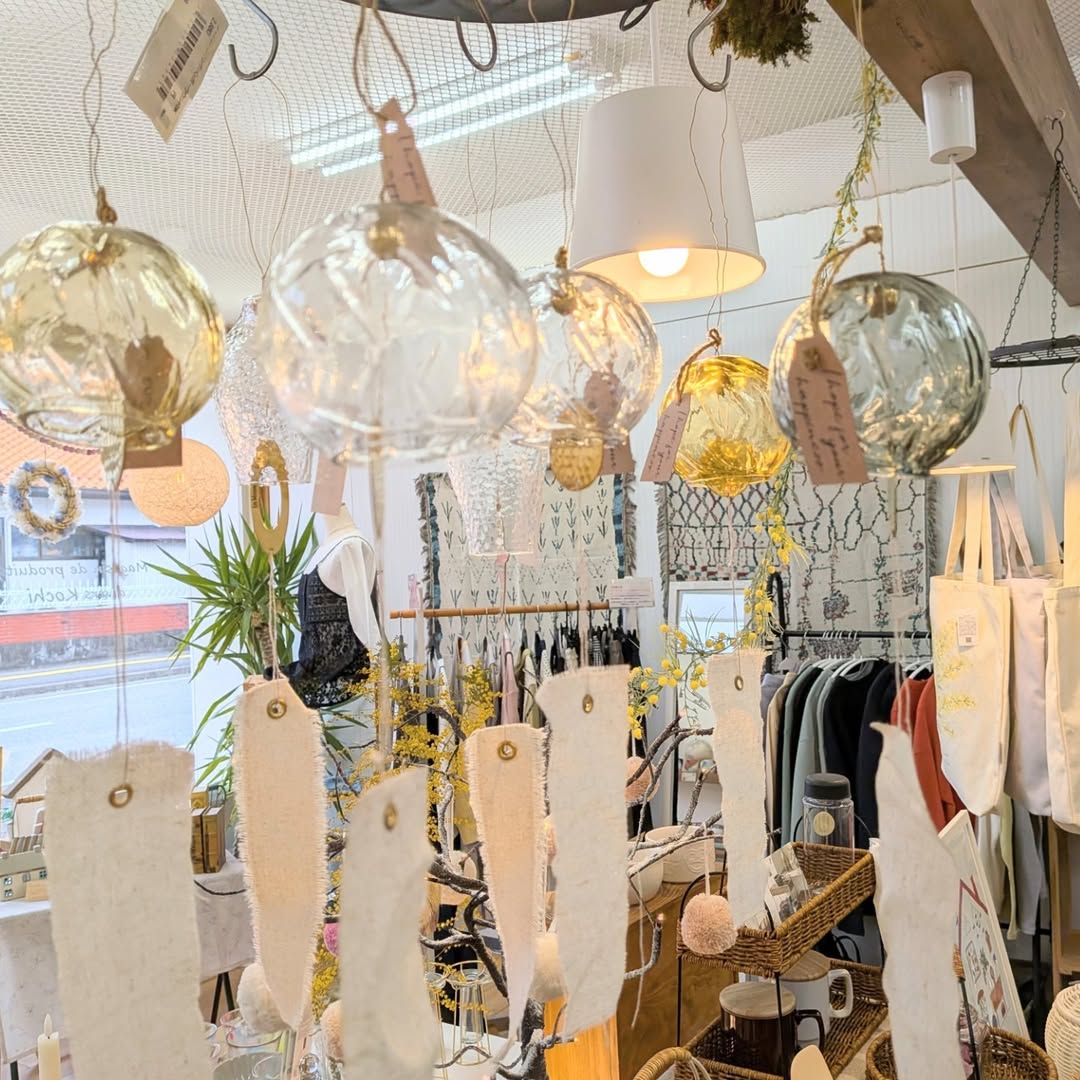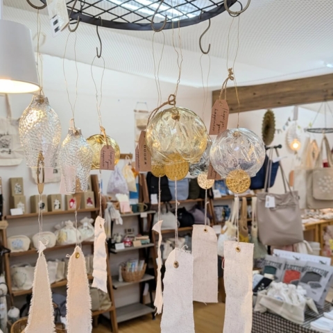 最後4つ目は毎年、この時期から展示しております爽やかな風に心地良い音色で響くウィンドウチャームを今年もご用意いたしました