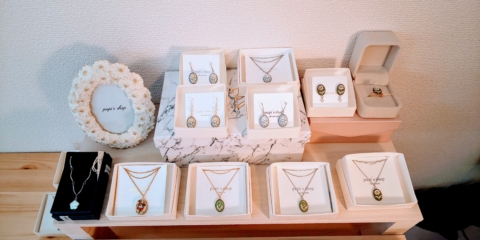 デザインも現在ある「フワラー」の他に「フラワー(バラ)」「すずらん」のピアス、ネックレスです。